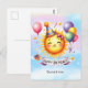 Gör deras dag ljusare med vårt födelsedags-kort med solsken där en leende sol har en födelsedagsfesthatt omgiven av dekorationer, ballonger, stjärnor och ren glädje och kul!