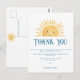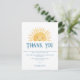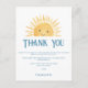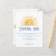 Tacka familj och vänner för att de kom till din baby shower med detta söta solsken baby shower tackkort. Det står tack med stilfull blå typografi och en bedårande gul akvarell sol. Meddelandet är anpassningsbart. Original Akvarell © Michele Davies.