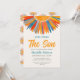 Familjen inbjudan och vänner till din sol-temade babydusch med den här söta solskenspojkarnas babyduschinbjudan. Texten "Här kommer sonen" i typografin snyggt med en färgad vattenfärg sol på en mjuk gräddbakgrund. Baksidan är dekorerad med sol mönster. Enkelt anpassade. Ursprunglig vattenfärg © Michele Davies.