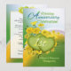 Uppfriskande vackra gula blommor som omger två gröna hjärtan flyter på en mjuk gyllene solskenskurva tvärs över denna unika 1:a bröllopsdag firande festinbjudan. Namn på framsidan och all text på baksidan kan anpassas med hjälp av den tillhandahållna mallen. Original konst och design av Anura Design Studio. Om du vill ha ett år som inte finns med i min butik, vänligen kontakta mig så lägger jag till det bara för dig.