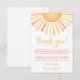 Denna ljusa och glada sol-inspirerade tack-kort är ett perfekt sätt att uttrycka tacksamhet efter din fest. Överst lägger en stor sol med livliga strålar i nyanser av gult, orange och en antydan till rött till en varm och glädjefull touch.