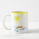 Muggen med en le sol, regnbågen med moln och ordstävet, "är du mitt solsken!", på det.