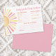 Det här horisontella kortet för Baby Predictions & Advice har en ljus och glad sol-tema design. På vänster sida finns en stor sol med livfulla strålar i klassiska nyanser av gult, orange och rött som ger en varm och lekfull touch. Till höger uppmanas gästerna att fylla i sina bästa gissningar för barnets ankomst, inklusive datum, tid, vikt, ögonfärg, hårfärg och vem barnet kommer att likna.