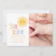 Vi presenterar vår stråle av solsken, ett modernt fotofödelsemeddelande. Teckning för gultens regnbågsillustration. En del av en samling.