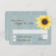 Tvättad dammig blå lada trä och solsnippa country rustic bröllopsvar kort med rustic chic ladugård trä och ljusgul kontrasterande solsnippa.