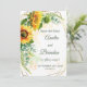 Rustikalt spara datum bröllopskort med ljusa solrosor och eukalyptusgrönska. Denna botaniska bröllopsdesign är perfekt för höst, landsbygd eller utomhusbröllop. Designen tillför värme och glädje samtidigt som den behåller en naturlig rustikal stil.