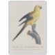 Denna bild är en fint detaljerad naturhistorisk illustration av en ung solparakit, historiskt kallad ”Guarouba dans son jeune âge” på franska. Konstverket visar fågeln graciöst sittande på en strukturerad gren och uppvisar både anatomisk precision och estetisk förfining, typiskt för tidig vetenskaplig illustration.
