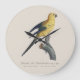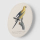 Denna bild är en detaljerad naturhistorisk illustration av en ung solparakit, historiskt kallad ”Guarouba dans son jeune âge” på franska. Illustrationen visar fågeln graciöst sittande på en strukturerad gren och visar både anatomisk precision och estetisk förfining, vilket är typiskt för tidig vetenskaplig illustration.