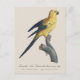 Denna bild är en detaljerad naturhistorisk illustration av en ung solparakit, historiskt kallad ”Guarouba dans son jeune âge” på franska. Illustrationen visar fågeln graciöst sittande på en strukturerad gren och visar både anatomisk precision och estetisk förfining, typiskt för tidig vetenskaplig illustration.