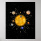 Vårt solenergisystem representerade som en atom, med de åtta planeterna (plus Pluto) eller sol-kärnan.