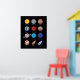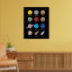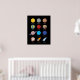 Affisch av solsystemet och planeterna i yttre rymden. Söt och färgglad tecknad illustration.