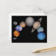 Överst till grund: Kvicksilver, Venus, Jorden med Måne, Mars, Jupiter, Saturn, Uranus, Neptune.