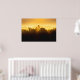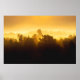 Soluppgång bakom dimma träd poster