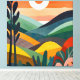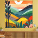 "Soluppgång över Rolling Backe" fångar det vackra i ett vibrerande soluppgång som belyser ett lush, rullande landskap. Abstraktens vattenfärgsdesign blandar varma toner och coolor, vilket skapar en harmonisk och lugnande scen. Perfekt för att lägga till lite av naturens lugn till vilket utrymme som helst.