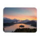 Rectangular souvenir-fotomagnet av en färgstark soluppgång över Sjö Bled med ön på morgonen tidigt i Slovenien.