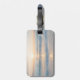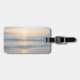 Återanvändbar bagagemärke med soluppgång över strandkonstruktionen. AI genererade.