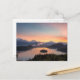 Vykort för en färgfull soluppgång över Sjö Bled med ön på morgonen tidigt i Slovenien.