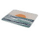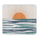 Abstrakt illustration av soluppgången med orange sol och blå, vit och turkos havs vågar dekoration