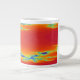 Denna fantastiska mugg har en fraktal som liknar en soluppgång. Till vänster finns massor av lila mönster som ser ut som tunna moln av mörker och till höger om dem finns områden med orange morgon solsken.