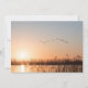 Naturfoto av soluppgången och en grupp flygande fåglar i Mecklenburg-Vorpommern, Tyskland. Plats: Naturschutzgebiet Anklamer Stadtbruch.