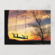 Silhouette med ett gammalt brutet träd-svängkort vid soluppstigande fotovykort