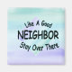 Hej som ordspråket säger som en Bra granne som stannar där om du känner till någon som behöver den här eller en matta eller något du kom till högerna.