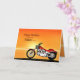 En motorcykel som liknar en Harley som står vid havet med en strålande orange solnedgång. Ett underbart kort för alla som tycker om cyklar och motorcyklar.Se hela korten för åldrar och relationer i min butik. Alla upphovsrätter till teckningar Norma Cornes