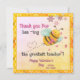 Tack för att ni är den underbarare läraren. Här är ett sött Valentinkort från barn till deras favoritlärare. Det är ett sött flygande bi som skickar kärlek och uppskattar en vacker rosa med gradient med gult hexagon bi kupa i mönster ram. Kortets baksida är en vacker övertoningslängd rosa med hjärtan.