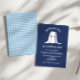 Some bunny fyller ett års födelsedagsfest inbjudan i marinblå med gingham bakgrund.