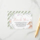 Send a note of gratitude with this matching bunny thank you card. Featuring the adorable watercolor bunny and floral vines. Perfect for thanking guests after your girl's garden baby shower celebration. Elegant floral stationery.