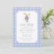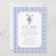 First birthday invitation featuring a sweet bunny illustration and classic blue gingham pattern. This “Some Bunny Is Turning One” birthday invitation is perfect for a boy’s first birthday party, spring birthday celebration, or bunny-themed birthday event.
