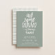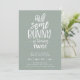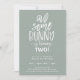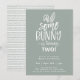 Söt "some Bunny" födelsedagsinbjudan i salvia grön. Vit typografi med kaninörat accent och handritad korgfläta stil bakgrund.