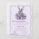 Celebrate a sweet new arrival with this Some Bunny Is On The Way Purple Baby Shower Invitation, a charming and girly design perfect for spring, Easter, and coquette-inspired baby showers. Featuring a dreamy lavender and purple color palette, this invitation blends romantic details with playful whimsy for a look that feels both nostalgic and fresh.