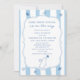 The soft pastel blue color palette paired with whimsical bunny details makes this invitation ideal for boy baby showers, gender-neutral baby showers, spring baby showers, garden parties, brunch celebrations, and traditional baby shower gatherings. The scalloped frame and hand-drawn floral accents add a gentle, storybook-inspired touch, creating a design that feels warm, inviting, and effortlessly timeless.