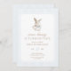 A classic vintage bunny design with soft blue bow detail and elegant neutral typography. Clean, timeless layout with a subtle stripe background—perfect for a boy’s first birthday party or a gender-neutral bunny celebration.
