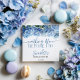 En chic detalj för ditt bröllopsfestbord, denna cocktailservett har handmålade akvarell blå hortensior och elegant skrivstil som lyder “Something Blue Before I Do”. Den fräscha, romantiska designen är perfekt för trädgårdsfester, vingårdsfester och klassiska förbröllopsfiranden. En genomtänkt detalj som lägger till mjukhet och stil till din fest och koordinerar vackert med hela inbjudningsserien.