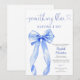 Den här vackra bröllopsinbjudan har en elegant blå slinga och stilren typografi. Designad av Thisisnotme©