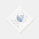 Trendiga, eleganta, vintage-te-kanna med toile de jouy-mönster "something blue before I do" tematiska bröllopsdusch servetter