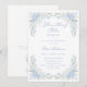 The invitation is adorned with stunning borders of hand-painted watercolor flowers in soft hues of blue, green, and light pink. These delicate blooms gracefully encircle the invitation, creating an inviting and serene atmosphere that captures the beauty of a blooming garden.