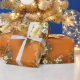 sömlös blandning av blomman på orangens bakgrund presentpapper
