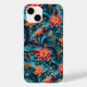 En vacker iPhone 14 Fodral (knappt där) med ett sömlöst pappert blommönster mot blå bakgrund.