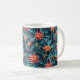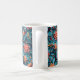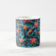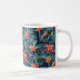 Ett vackert klassiskt mugg med ett sömlöst pappert blommönster mot blå bakgrund.