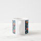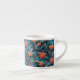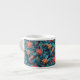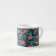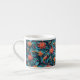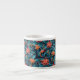 Ett vackert Espresso mugg med ett pappert blommönster utan skarpsinne mot blå bakgrund.
