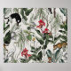 Sömlös bovin Illustration Pantera, Leopard och Exotic Birds Wildlife i Jungle Forest Tropical Lövs with Red Hibiscus Flowers Red Blommar on Blue Background Hand plockade Art hoopoe, blommor,illustration,mönster,tropiskt,vintage,tapet,art,bakgrund,svart bakgrund,botaniskt,klassisk,klipart,cockatoo,colo torr,design,Mönster,europé,exotisk,väv,Hand plockade,retro,illustration,