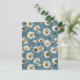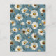 Sömlös Daisy Flower Mönster på Blue Vykort
