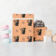"Sömlös Halloween Wrapping Papper med Svarta katter" har silhuverterad svarta katter mot papprare och skapar en subtil men fläckig design för Halloween-hölje.