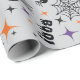 "Sömlös inkapsling Papper med Spiders, Cobwebs, Boo" är fylld med spookyspindlar och websar, med fet Halloween-fraser som "boo" spridd över hela perfekten för inslagning av spookygåvor.