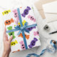 "Sömlösa Mönster Design Colorful Candies Halloween Wrapping Papper" visar en blandning av färgfulla cander som är spridda över hela världen, perfekt för att lägga till en roligt och ett festligt utseende i Halloween-presentationen.