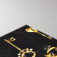 Sömlös mönster av antika, guld och silhuette nycklar mot svart bakgrund.