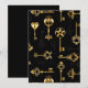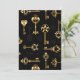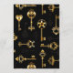 Sömlös mönster av antika, guld och silhuette nycklar mot svart bakgrund.